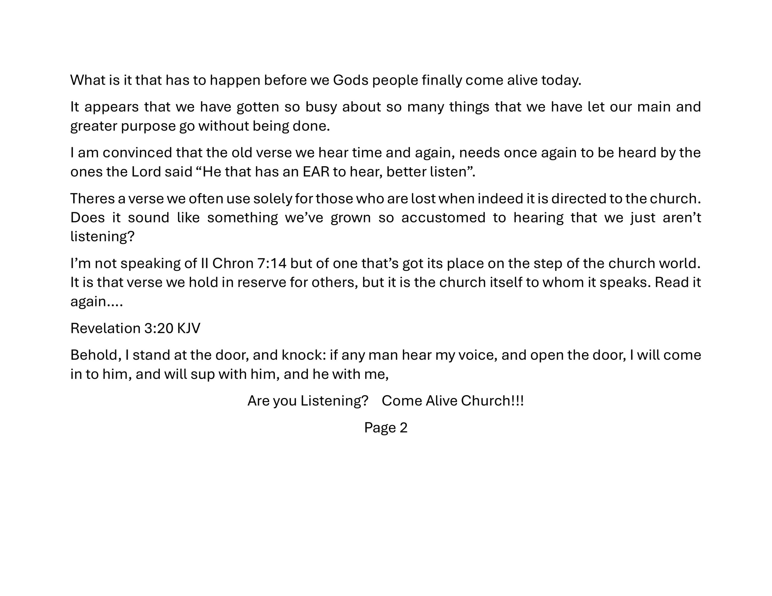 We believe in Prayer. A real relationship with our Lord involves prayer, for our needs, the needs of others and it is our calling!
